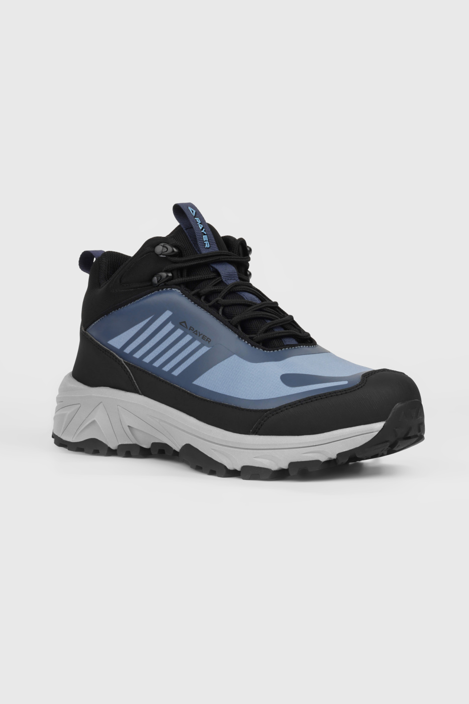 • мембранный чулок"    "Треккинговые ботинки PAYER Памир — идеальный выбор для активных путешественников, которые ценят надежность и комфорт. Верх из прочного нейлона с влагозащитной пропиткой обеспечивает защиту от внешних воздействий, а удобная система шнуровки с крючками-зацепами в верхней части позволяет быстро и легко регулировать посадку. Шнурки водоталкивающие, содержат  мультифиламентную нить, не растягиваются, что гарантирует долговечность.